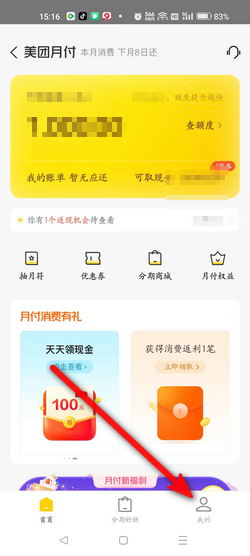 2. 在个人中心页面中,找到“美团月付”选项,点击进入。